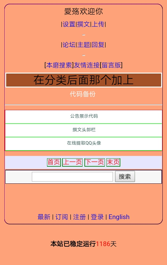 #ln-h{display:none;}body{background-color:lightsalmon;color:black;line-height: 28px;text-align: center;}.file_list a{color:#2F4F4F;}div { border-style:groove; border-color:purple; border-width: 1px;background-color:#DEB887;margin: 1px 1px;}p {margin:2px 1px 2px 1px;background-color:#E6E6FA;color:red;}form{background-color:#F5F5F5;color:red;}.file_list{background-color:white;color:#556688;font-size:10px;border:1px solid red;}a[href^="/cat/"]{ color:white;border-color: red; }.pagination span,.pagination a{ color:red; /*"首页""上页""下页""末页"文字颜色*/ border:1px solid green; /*"首页""上页""下页""末页"文字的边框*/ }.file_list li{ border-bottom: 1px solid lime; /*文件名下边框线(即下划线)粗细 样式 颜色*/;}#whole_body { background: url(http://23lzj.wodemo.com/down/20140210/265947/%E7%AB%B9%E5%AD%90.......jpg) repeat-x scroll,url(http://23lzj.wodemo.com/down/20140210/265798/hd.gif) repeat-x scroll right bottom; /*背景图属性,右下角logo属性*/ border-radius: 12px; -moz-border-radius: 12px; -webkit-border-radius: 12px; /*圆角边框。-moz-适用于Firefox浏览器,而-webkit-则是用于Safari/Chrom浏览器 */ background-size:200px; /*背景图尺寸*/}